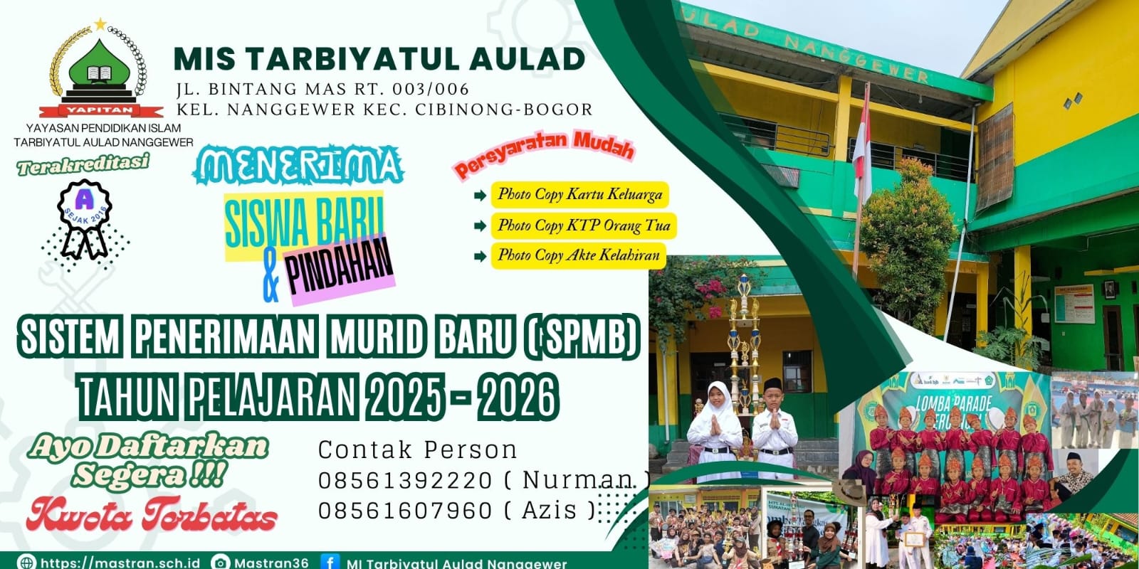 NSM : 111232010028 NPSN : 60706704 Nama Madrasah : MIS. Tarbiyatul Aulad Nanggewer Waktu Belajar : Pagi NPWP : 025189556403002 No SK Pendirian : W.I/PP/004.1/2225/1991 Tanggal SK Pendirian : 01 Mei 1991 No. SK Ijin…